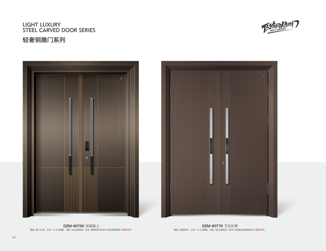 产品型号:DZM-8075K、DZM-8077K-轻奢钢雕门系列