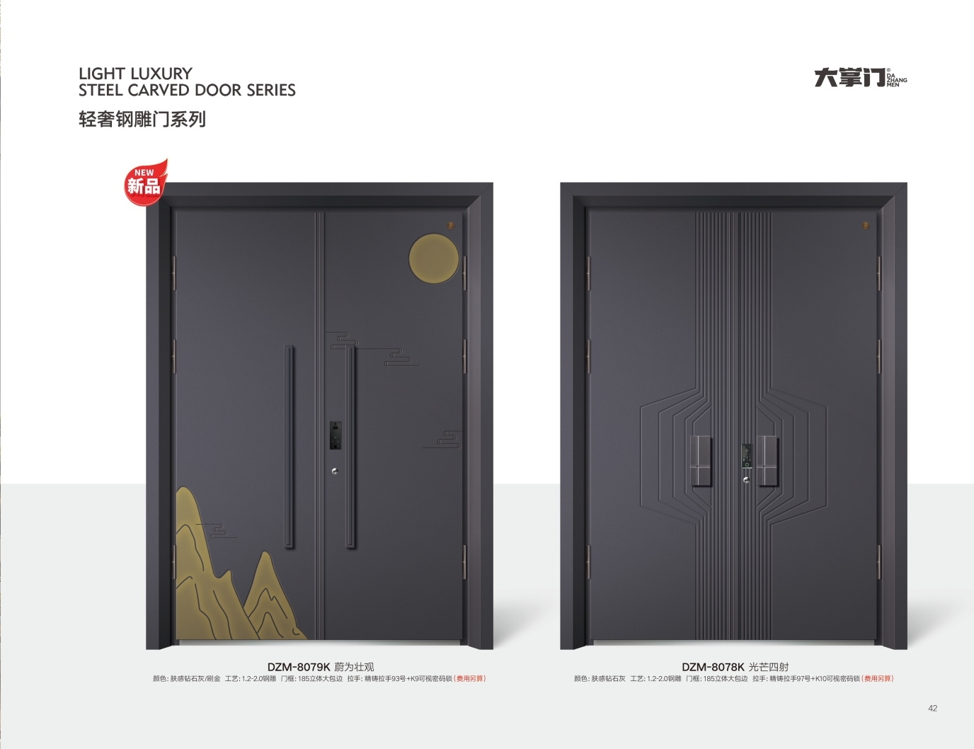 产品型号:DZM-8079K、DZM-8078K-轻奢钢雕门系列