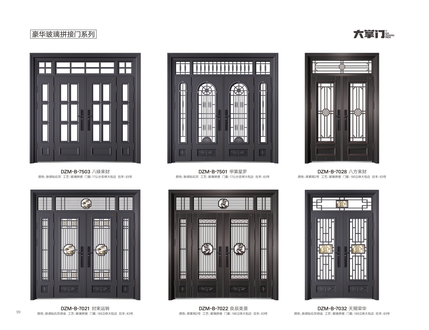 产品型号:DZM-B-7503、DZM-B-7501、DZM-B-7028、DZM-B-7021、DZM-B-7022、DZM-B-7032-豪华玻璃拼接门系列