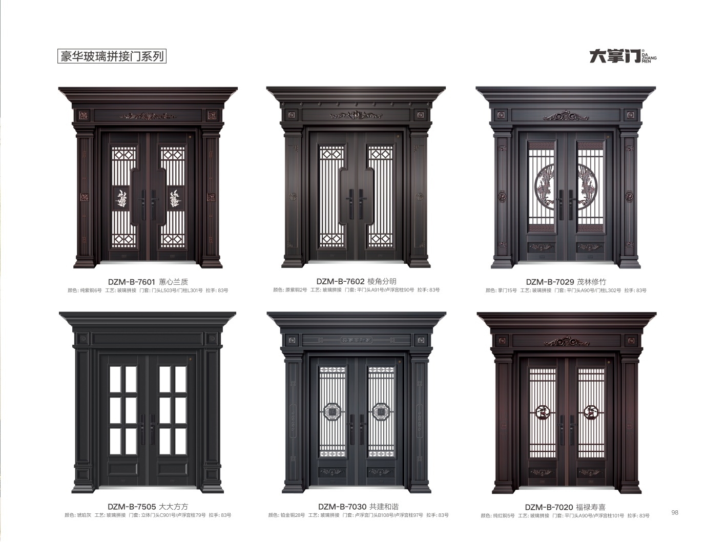 产品型号:DZM-B-7601、DZM-B-7602、DZM-B-7029、DZM-B-7505、DZM-B-7030、DZM-B-7020-豪华玻璃拼接门系列
